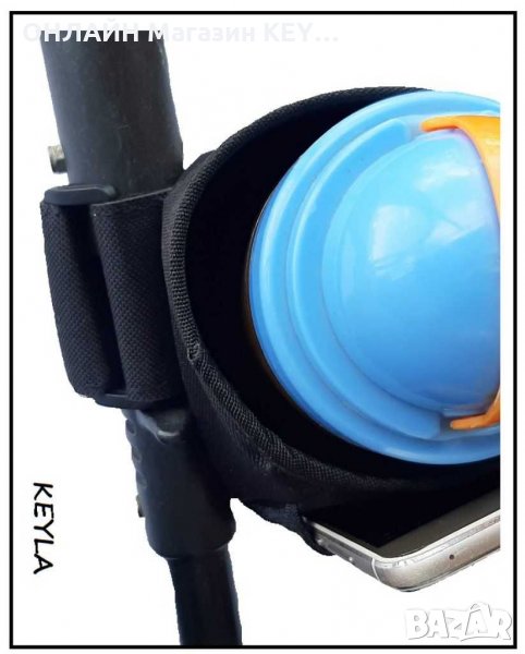Универсална поставка за чаша,захваща се посредством пластмасова катарама и велкро лента.
