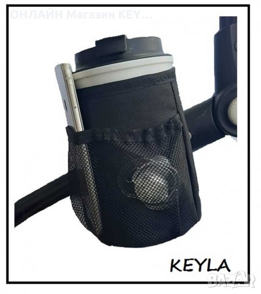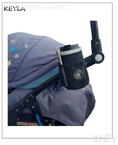 Разполага с едно голямо отделение за чаша /шише изработено от вътрешната страна от дебел гумиран плат/от външната от гумирана кодура и двойно гумирано дъно. Така се осигурява по-голяма защита на съдържанието от външни влияния и едновременно по-стабилна структура на стойката. От външната страна разполага с два външни джоба с мрежа къдетъо могат да бъдат поставени лични принадлежности (телефон, биберон, ключове и др. )