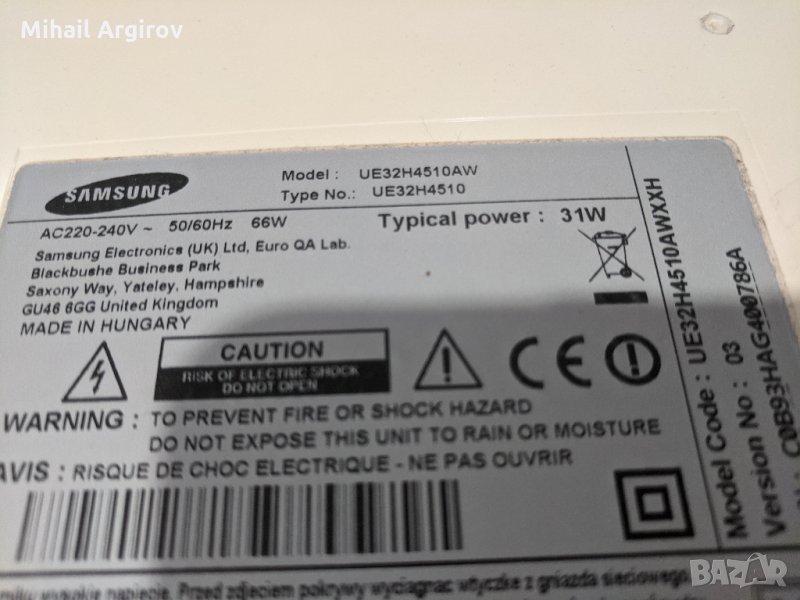 SAMSUNG UE32H4510AW-BN41-02156A-BN44-00696A, снимка 1 - Части и Платки - 29258601 SAMSUNG UE32H4510AW-BN41-02156A-BN44-00696A, снимка 2 - Части и Платки - 29258601 SAMSUNG UE32H4510AW-BN41-02156A-BN44-00696A, снимка 3 - Части и Платки - 29258601 SAMSUNG UE32H4510AW-BN41-02156A-BN44-00696A, снимка 4 - Части и Платки - 29258601 SAMSUNG UE32H4510AW-BN41-02156A-BN44-00696A, снимка 5 - Части и Платки - 29258601 SAMSUNG UE32H4510AW-BN41-02156A-BN44-00696A, снимка 6 - Части и Платки - 29258601 SAMSUNG UE32H4510AW-BN41-02156A-BN44-00696A, снимка 7 - Части и Платки - 29258601 SAMSUNG UE32H4510AW-BN41-02156A-BN44-00696A, снимка 8 - Части и Платки - 29258601 SAMSUNG UE32H4510AW-BN41-02156A-BN44-00696A, снимка 9 - Части и Платки - 29258601 SAMSUNG UE32H4510AW-BN41-02156A-BN44-00696A, снимка 10 - Части и Платки - 29258601 1/10