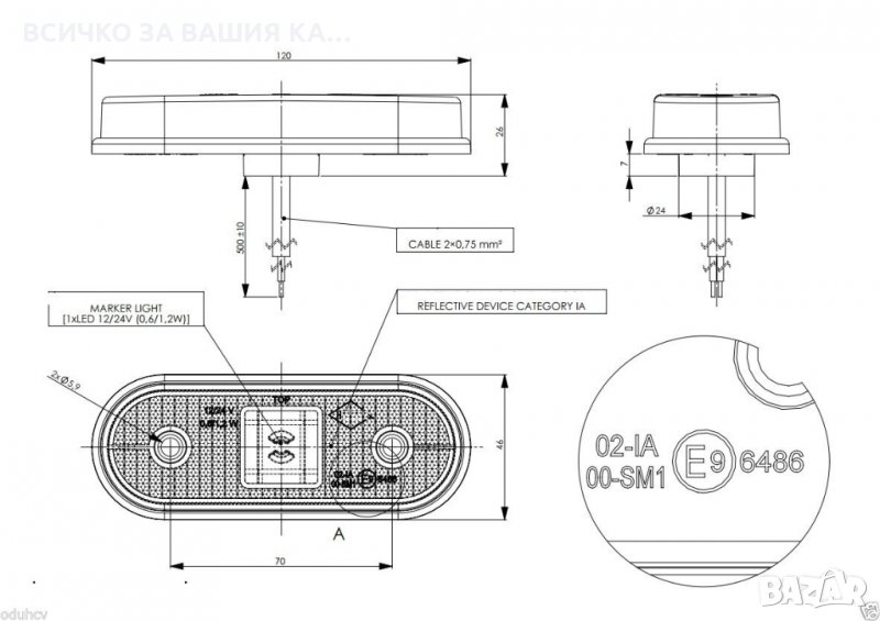 ЛЕД габарит с 1 диод овал 12/24 волта Е- маркиран