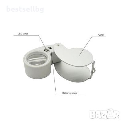 Малка джобна мини ръчна лупа с LED осветление за ремонт на часовници, компютри, лаптопи, фотоапарати и други предмети, запояване, четене, шиене на гоблени, бродиране, рисуване, злато, маникюр, бижута, монети, всякакъв вид работа и други дейности, в които се изисква увеличение и осветление.