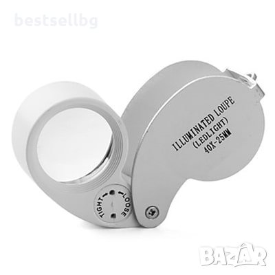 Малка сгъваема лупа с 2 броя LED светлини и 40Х увеличение