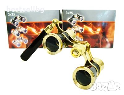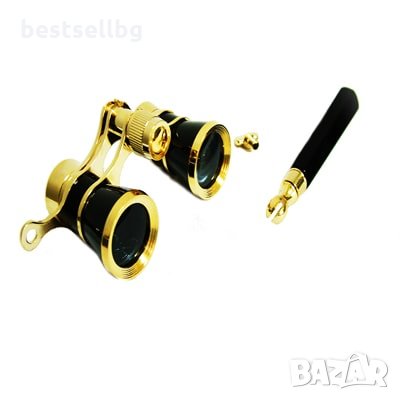 Черен театрален бинокъл с дръжка увеличение 3Х за театър опера подарък