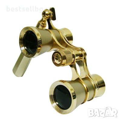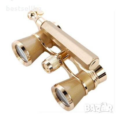 Златист театрален бинокъл с дръжка увеличение 3Х театър опера подарък