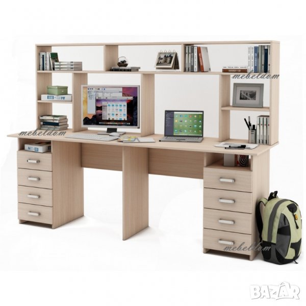 Бюро 208см. за двама с надстройка и 8 чекмеджета(код-1196) поставяне: до стена,бюрото е еднолицево