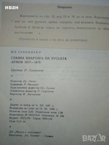 Пътеводител на военно исторически музей гр.Плевен - Главна квартира на Руската армия 1877 - 1878г, с.Пордим - Ц.Симеонов - 1968г.