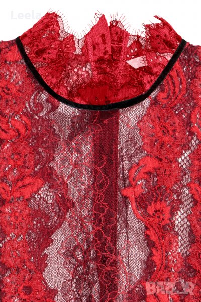 Елегантна блуза с необработени ръбове от мека и деликатна червена дантела от H&M, с облечени копчета отзад на врата, малка столче-яка и дълги дълги ръкави с облечени копчета на маншетите.