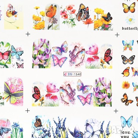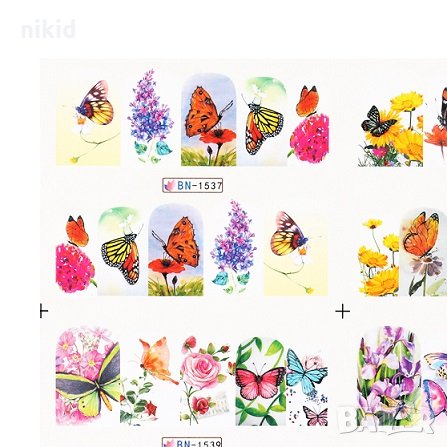лист 12 в 1 различни Пеперуди слайдер татос ваденки водни стикери за нокти маникюр → Обява 29277210