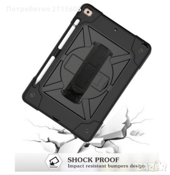 Apple iPad 10.2 (iPad 7) 360° Въртящ се Противоударен Калъф Стойка с Презрамка - Черен