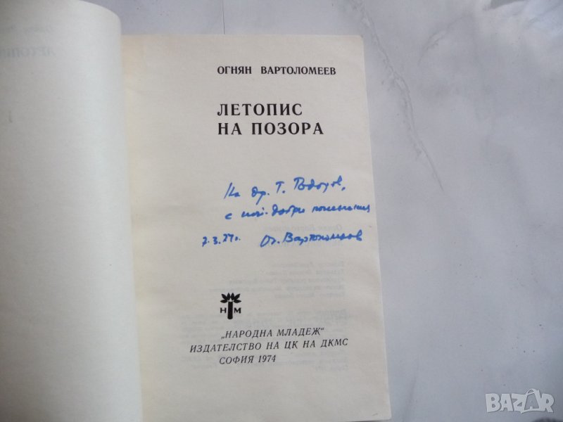 Летопис на позора - Огнян Вартоломеев, с автограф от автора.