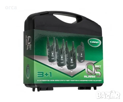 Комплектът CARP PRO Q5 е иновативен безжичен /Wireless/ дигитален сигнализатор за шаранджийски риболов. Модерни зумери със станция от най-ново поколение, с радиус до 300 м на открито и влагоустойчиви конструкции, гарантират спокойствие и контрол при всеки улов.