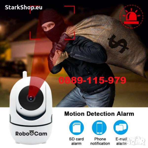 Представяме ви най-модерната безжична въртяща камера WiFi Robocam. С функция за следене на движещ се обект с кристална FullHD картина както през деня така и през ноща и завъртане на 360 градуса.