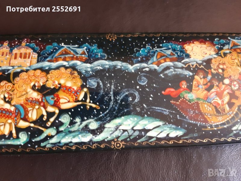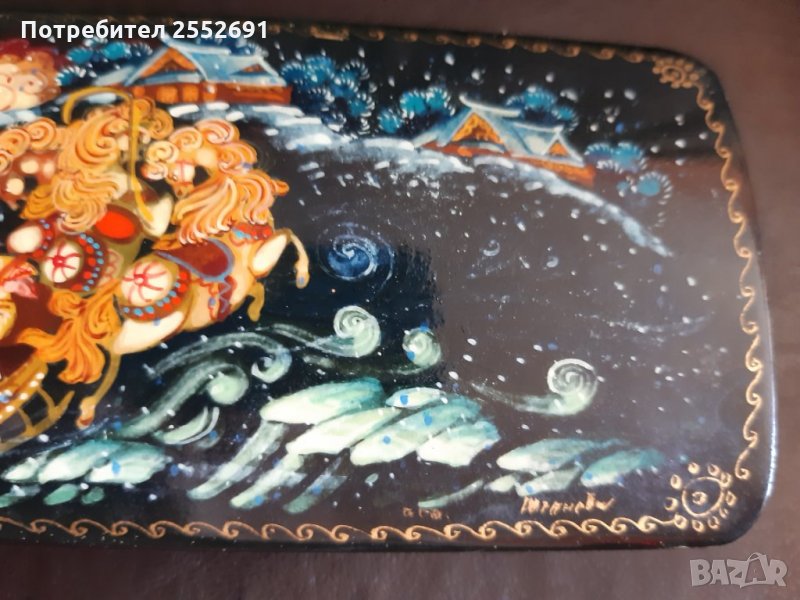 Дървена, ръчно изработена и изрисувана кутия с лаково покритие. "Руска зима",авторска изработка, ФЕДОСКИНО.Р-ри-19/7/3см.