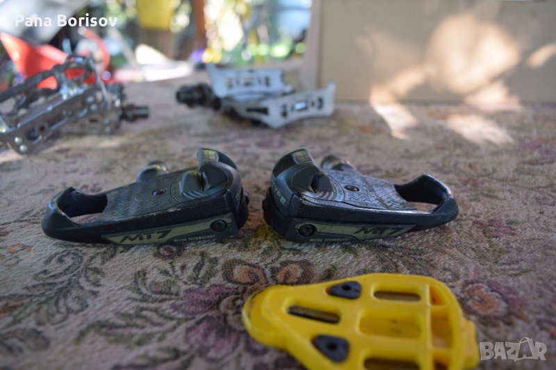 3. Клиплес Педали Miche SuperType MT7, Педалите през 90-те са били флагмена на Miche, най-високият им клас. Намират се в добро състояние, предлагат се с парчетата, които са в добро състояние. От парчетата липсват пластинките и болтовете които лесно могат да бъдат пригодени от други парчета. - 110 лева.