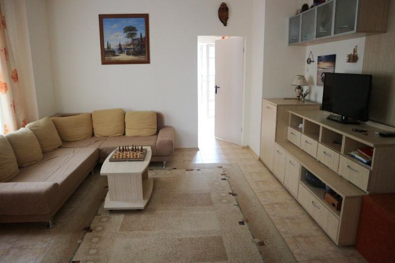 БУТИКОВ КОМПЛЕКС!!!Уважаеми клиенти,предлагаме за продажба прекрасен тристаен апартамент на 3-ти етаж в к-с с контролиран достъп. Всички мебели и уреди са включени в цената. Апартаментът се продава напълно обзаведен, с капацитет до 6 души, много просторен с две тераси. Комплексът се на в непосредствена близост до главения път и във близост до морето, супермаркет, ресторанти, и автобусна спирка. Разполага басейн, открит кът за шезлонги, барбекю.