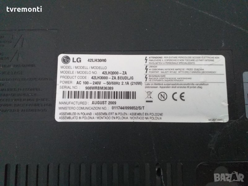Захр.платка EAX55357705/4 LGP42-09LA Борда е гарантирано работещ Демонтиран от уред със счупен дисплей Захр.платка EAX55357705/4 LGP42-09LA тествана от нашия техник
