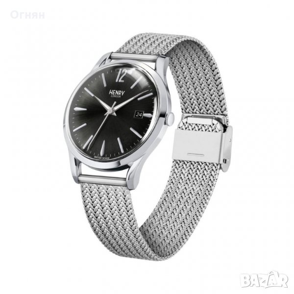 РЪЧЕН ЧАСОВНИК НА ХЕНРИ ЛОНДОН ОТ КОЛЕКЦИЯТА EDGWARE, регистриран British Design, Диаметър 39мм, Корпус и Верижка от неръждаема стомана 316 L, Полировка, Куполно акрилно стъкло, Черен циферблат със