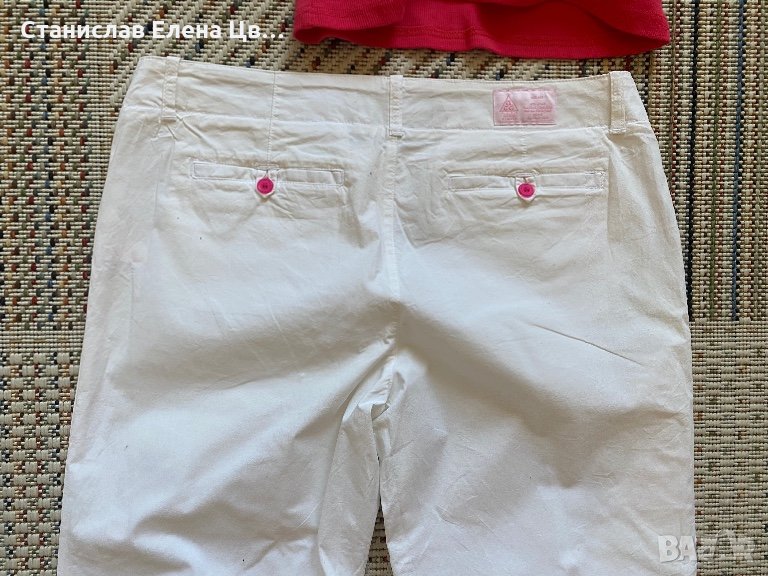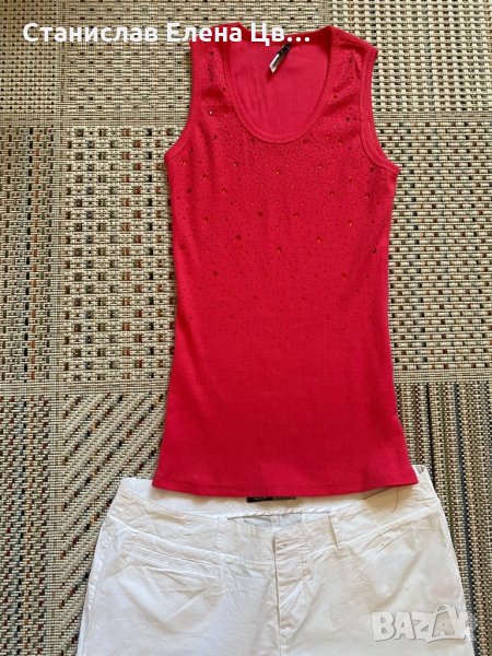 Бял панталон на Nike в комплект с червено потниче. Потникът е с размер S/M по етикет, а панталонът-42. И двете неща са само изпрани,не са обличани.
