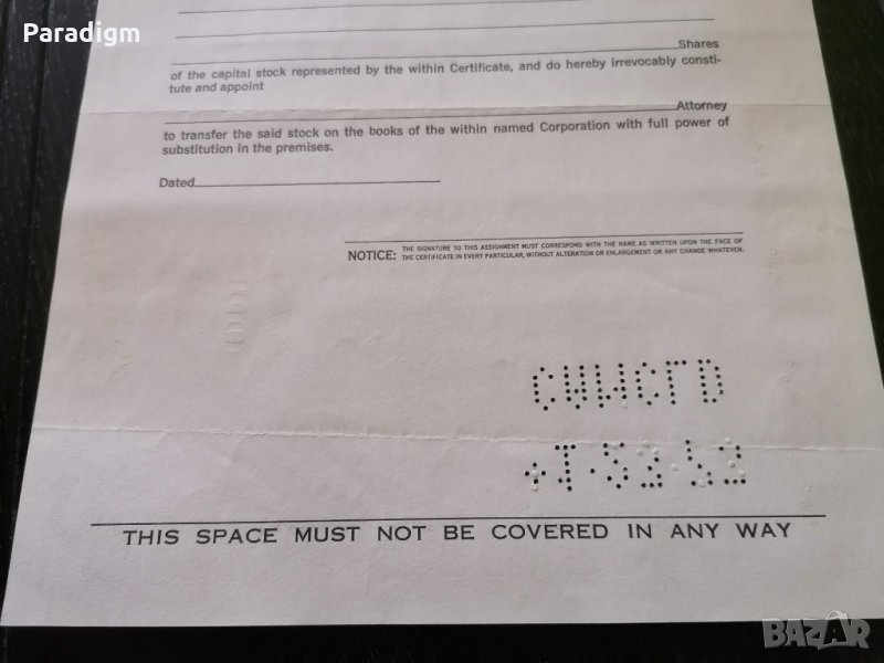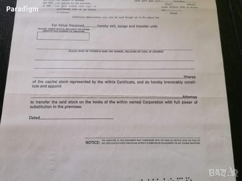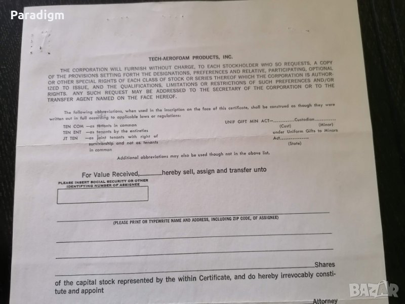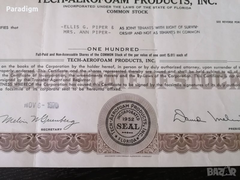 Сертификат за притежание на акции от 1970г.