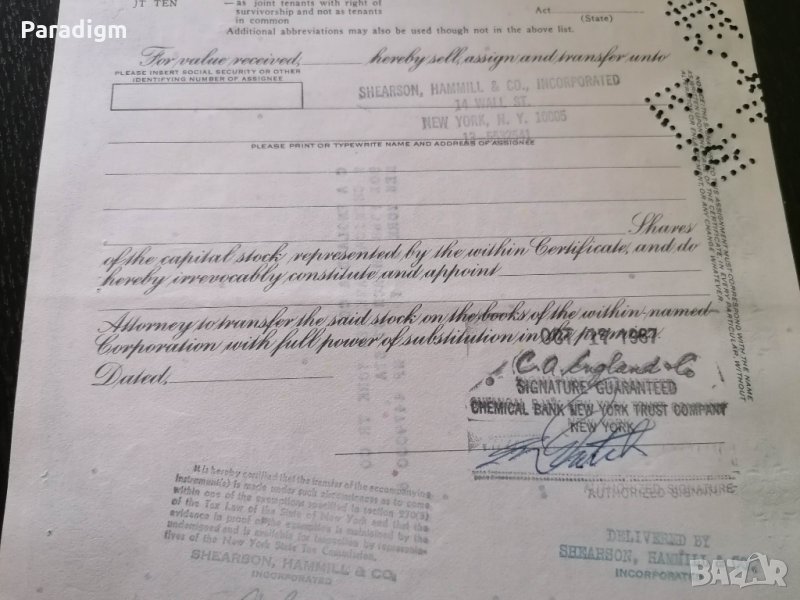 Сертификат за притежание на акции от 1964г.