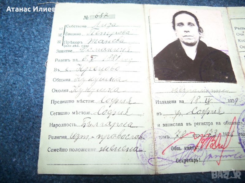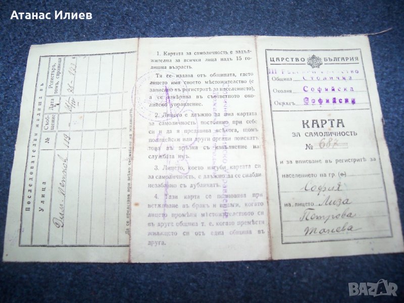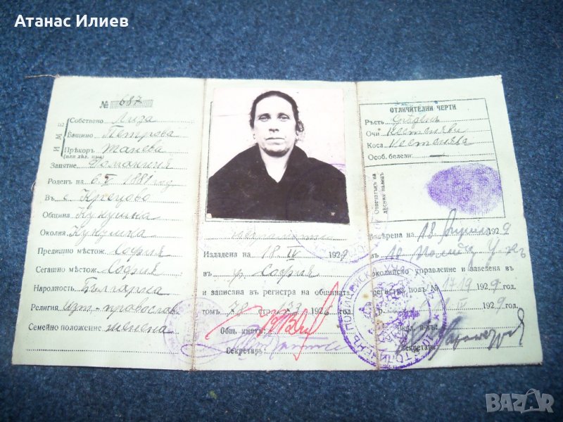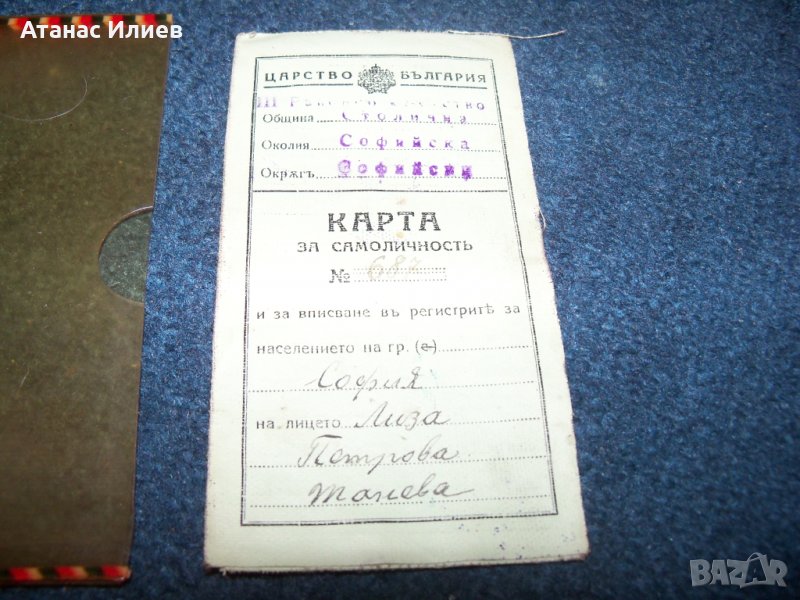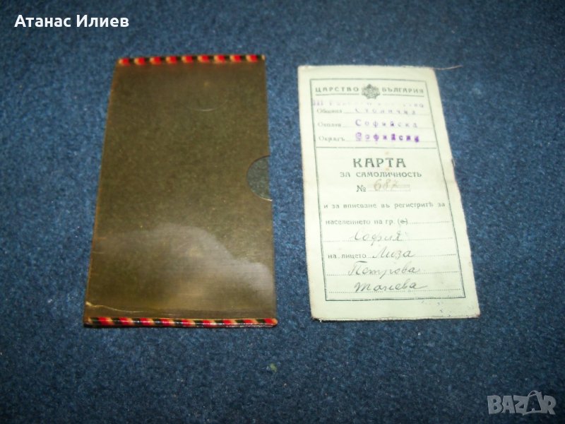 Карта за самоличност от времето на Царство България. Картата е с оригиналното си калъфче, което е много рядко и е в много-добро състояние. Наистина уникална находка за всеки колекционер. Картата е от 1929г.