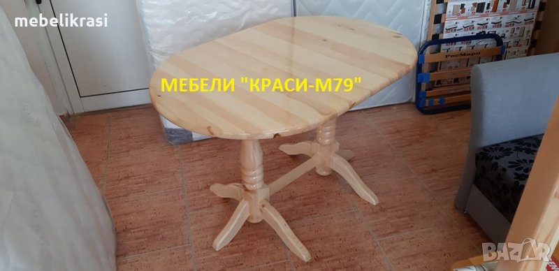 Кухненска маса "Денвър" разтегателна - изработена изцяло от естествено дърво/Бял Бор/ в натуралният цвят на дървото. С размери 80/ 120+30 см среден плот/75см. височина.