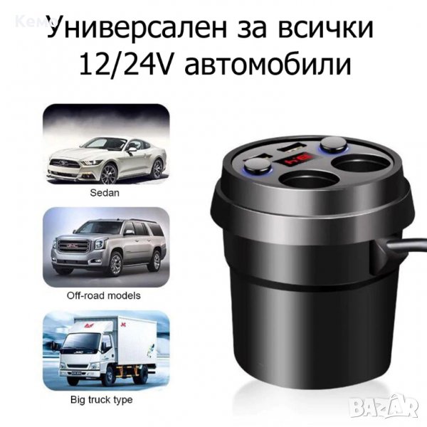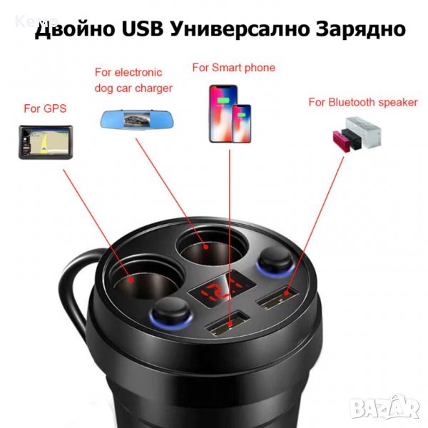 Едно сигурно и надеждно приспособление за автомобила с два USB порта (общо 3.1A) които могат да зареждат едновременно две устройства като навигации, мобилни телефони, игри, DVD плейъри и др.