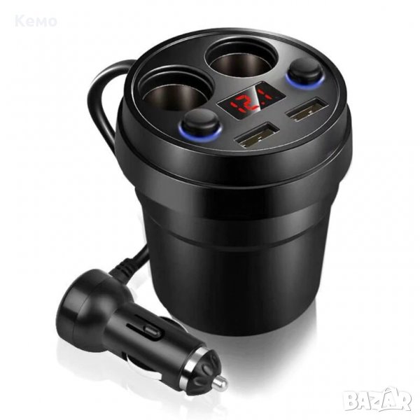 Висококачествен двоен разклонител за запалка на автомобил с два куплонга с отделни бутони за включване и изключване