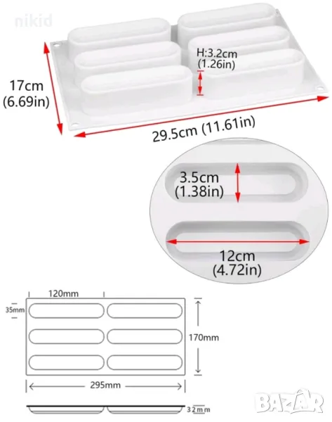 6 Дълги заоблени Кубоидни овал форми силиконов молд калъп за направа десерти с крем шоколад мус → Обява 29312280