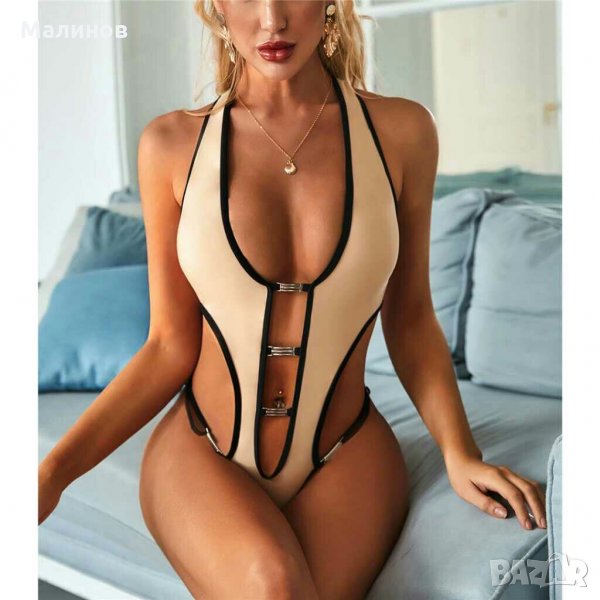 Цял бански, бикина в червено с черен кант. Наличен в М размер, червен цвят. С допълнителна поръчка може да се поръча и в екрю, с доставка до 15-30 дни.