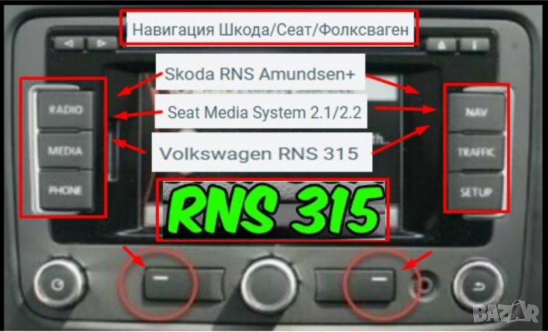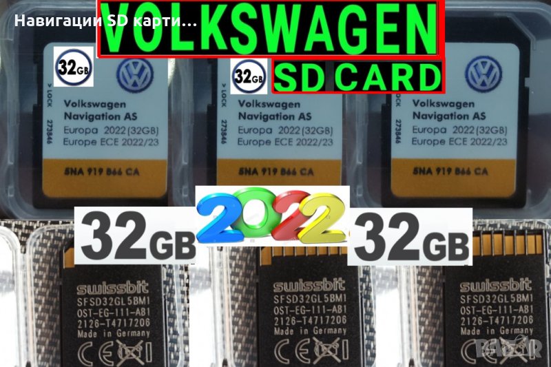 * Съвместимост на SD картата --> VW RNS 315 / Skoda RNS Amundsen+/ Seat Media System 2.1/2.2 (виж снимката в обявата)