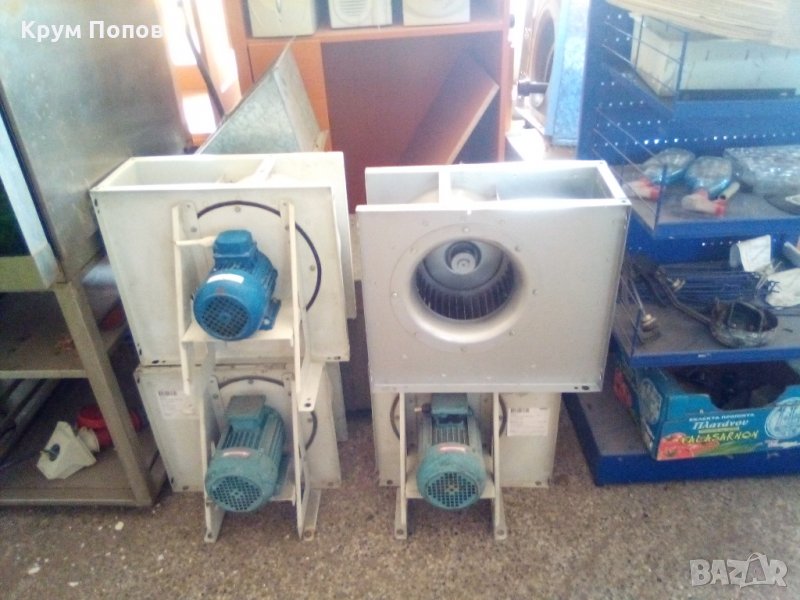 Освен тези предлагам и употребявани и много др.видове и модели-от1000 до 20 000куб./час,за кухни,скари, бояджийски камери,дърводелски цехове,покривни за монтаж директно върху комина,канални-за враждане във въздуховоди,за професионални абсорбатори ,аспирации, прахови и др.Цени от 200 до 1500лв.