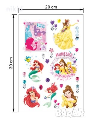Белл Малката Русалка Ариел малък самозалепващ стикер лепенка за стена детска стая мебели принцеси → Обява 29334647