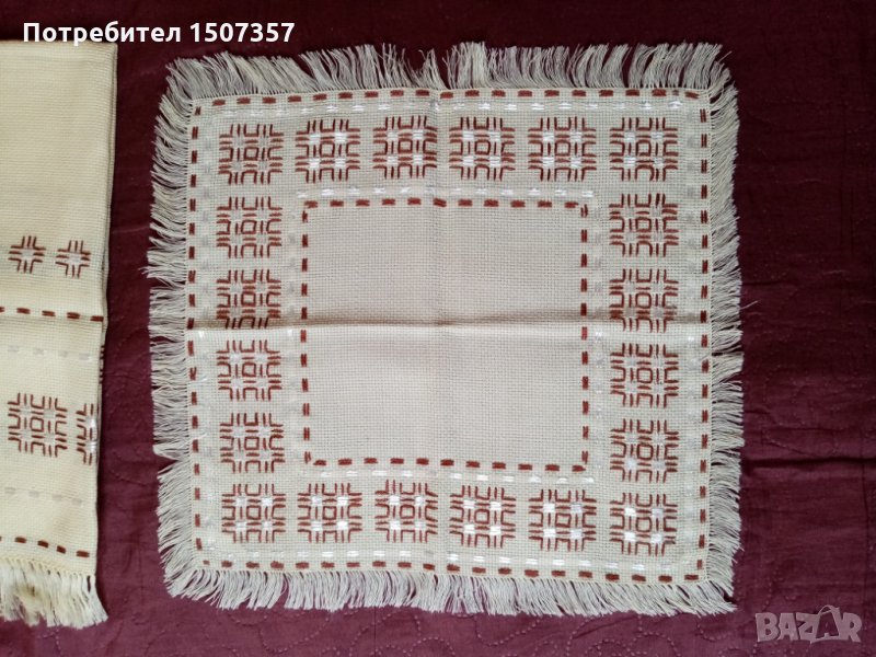 Ръчно бродирани с копринени и памучни конци. На панама.