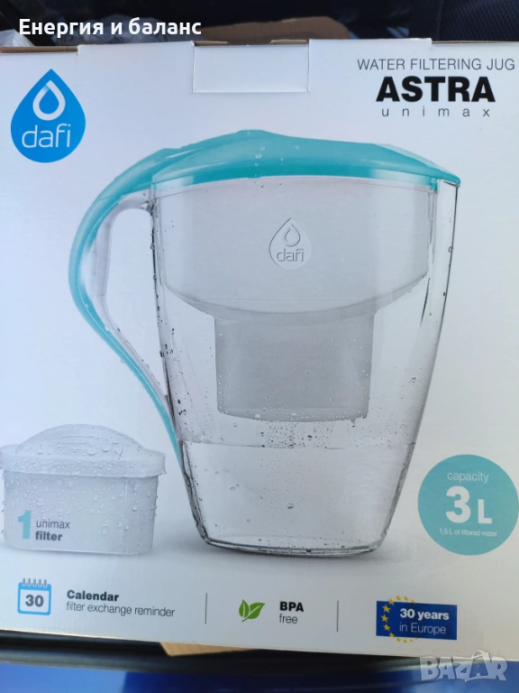 Кана за пречистване на вода Astra Unimax, с брояч и филтър Unimax, 3 л → Обява 29359975