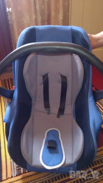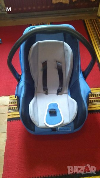 Стол за кола за новородено. Забележката петно снимано. Не съм го третирала с препарат и незнам дали ще се махне. В добро състояние без скъсано или някакви повреди.