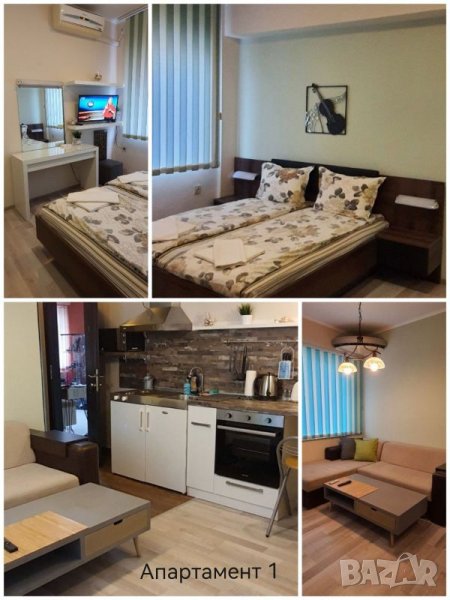 апартамент със спалня,всекидневна,баня с тоалетна,тераса.Всекидневната е с оборудвана кухня с котлони ,хладилник,тостер,мивка,посуда, ел.кана,консумативи.