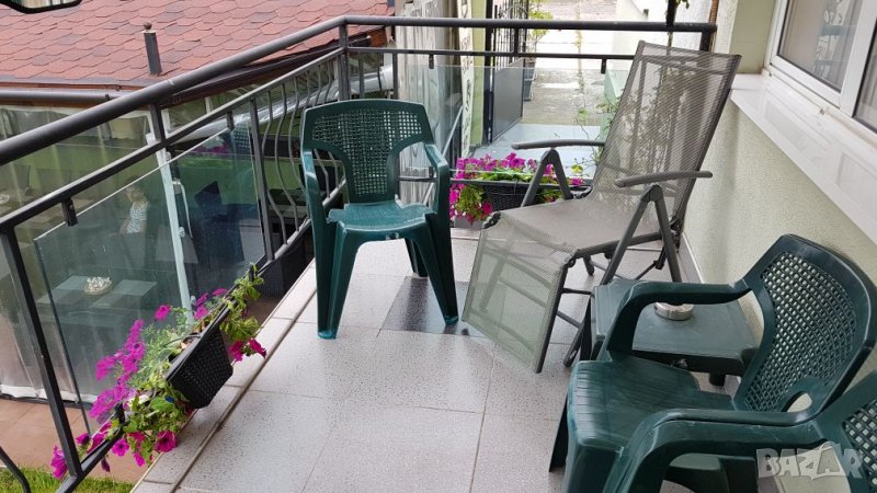 В ЦЕНАТА ПОЛЗВАТЕ БЕЗПЛАТНО И:отвън в градината 50кв.м. открит външен басейн с дълбочина 130см,част с барбекю, плюсов и минусов хладилник/освен този в апартамента/.микровълнова фурна ,фритюрник, посуда. Имате и навес с ратанови маси и столове,телевизор,машина за студена и топла вода за пиенекафе машина/безплатно/,ледогенератор и пак посуда.Градина с райграс ,шезлонги, вътрешен паркинг.