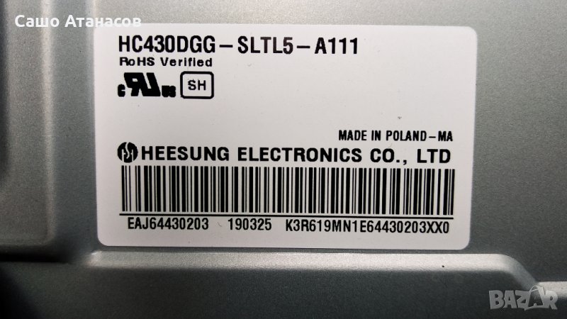LG 43UK6470PLC със счупена матрица ,LGP43DJ-17U1 ,EAX67872805(1.1) ,TWCM-K305D ,HC430DGG-SLTL5-A111