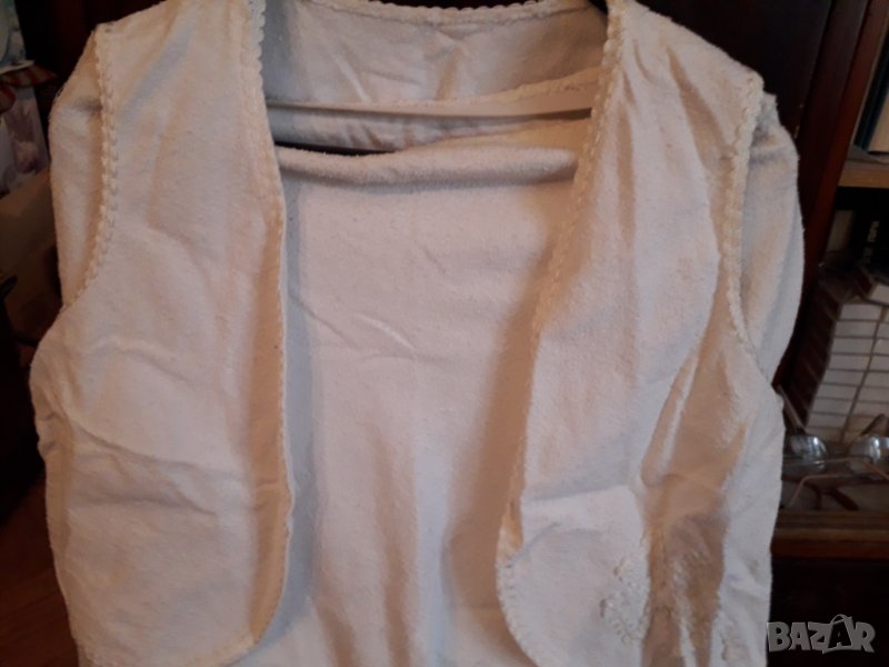 Летен дамски комплект бяла пола с елек, памучна материя бял шантунг, . Размер S-М, Полата е с талия 36 см /обиколка 72 см/ и до долу се разширява, дължината е 70 см, Елека е без копчета с апликация цвете от едната страна бюст около 46 см /обиколка 92 см/. Отговарям на съобщения тук, изпращам с куриер или лично предаване в София.