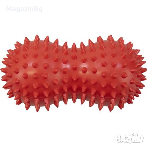 Двойна масажна топка с бодлички нова , която чрез притискане към тялото масажира в дълбочина. Формата позволява да бъде използвана на земя (упражнения за врат и прасец) и на стена (упражнения за гръб). Подходяща за употреба както от професионални масажисти, така и за самомасаж. Упражненията с топката подобряват кръвообръщението и имат антистрес ефект. Компактна и удобна за пренасяне. Размери – 14х7 см. Тегло – 130 г. Цвят - различни цветове. Материал – PVC.
