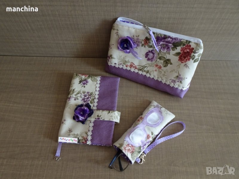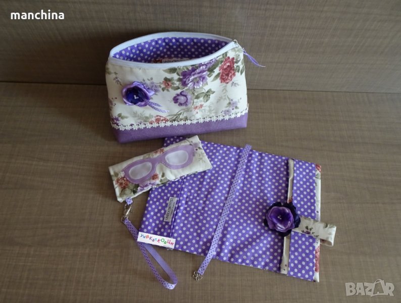 Сет в лилаво-Несесер,обложка за книга и калъф за очила → Обява 29382388