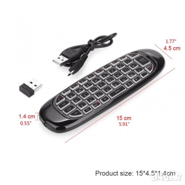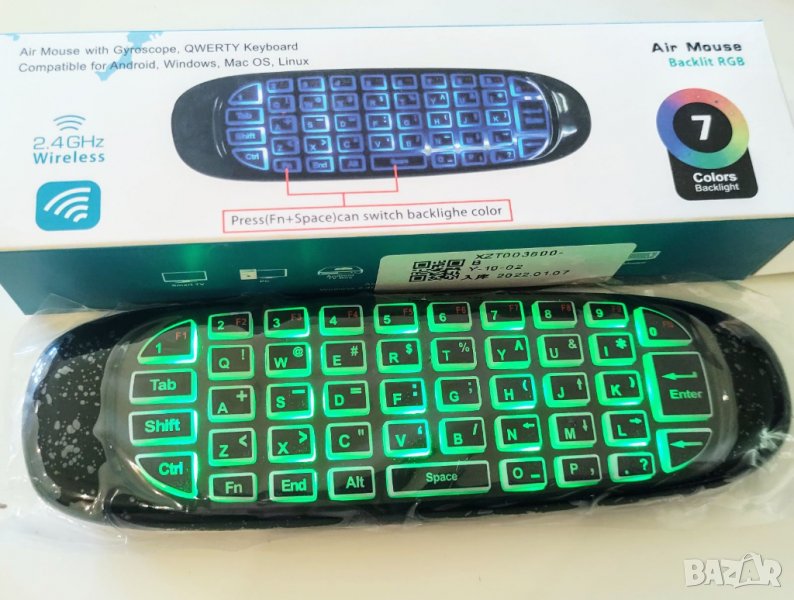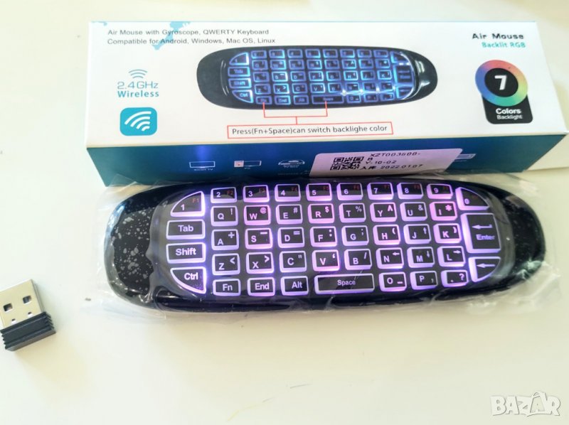 Безжична въздушна мишка и светеща клавиатура за телевизор, компютър, лаптоп, дистанционно, жироскоп