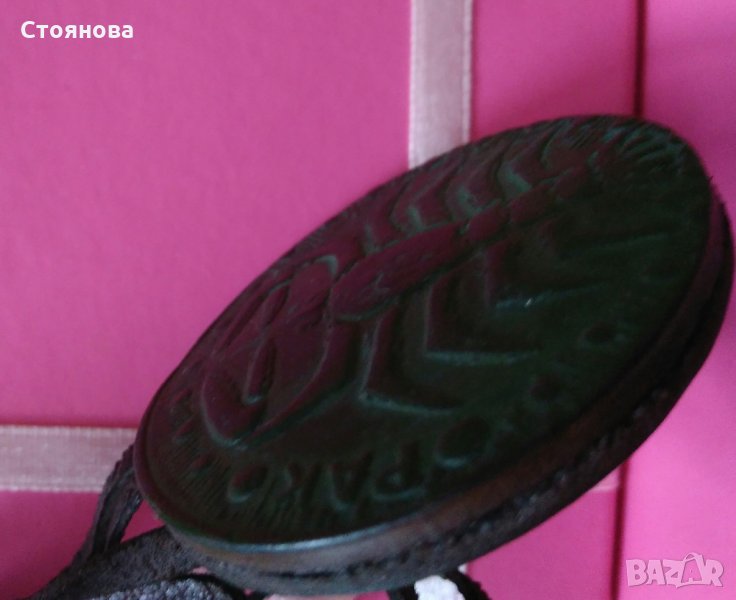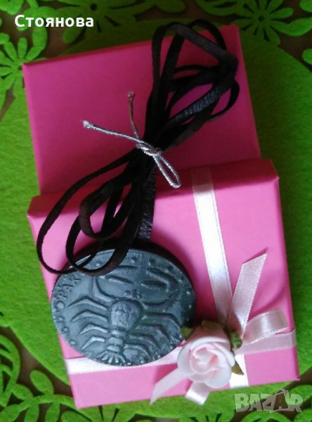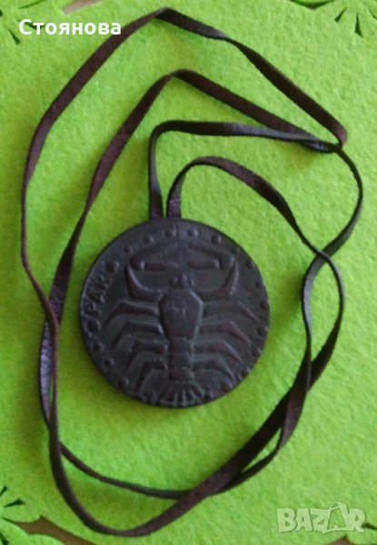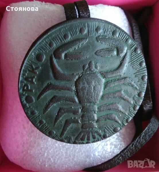 Продавам кожено колие "Зодия Рак", ръчна изработка, размери - дължина от горе до долу - 45 см. (обиколка 80 см.), диаметър на кръглата плочка - 5 см., която в лицевата част е в масленозелен цвят, а останалата част - шоколадовокафяв цвят, неизползван подарък.