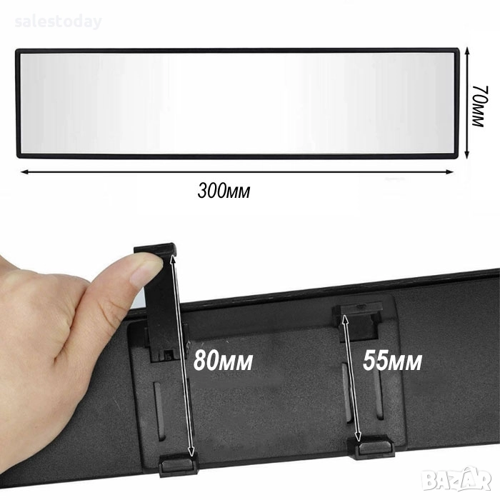 - Захващане чрез разтягащи се скоби върху фабричното огледало.