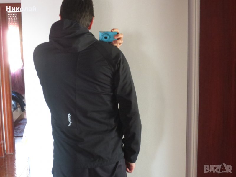 Якето е чисто ново. Материята е много лека ветро и слабо водоустойчива. Светлоотразителни елементи. Висока яка с вентилирани отвори .Три външни джобаразмери подмишница 60, в основата 56, дължина цип 71 и гръб без дължина на качулката 74см