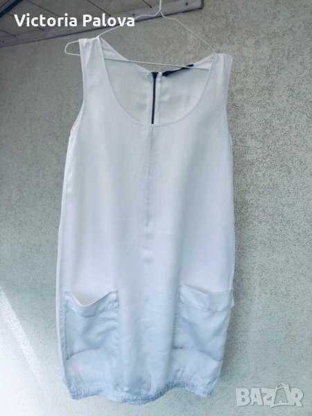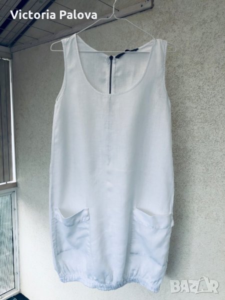 Произведена в Мароко,красива спортна ленена рокля от първокласен лен,гръдна обиколка-47см,ханш-55-56см,талия-51см,дължина-91см.роклята е свободна кройка.