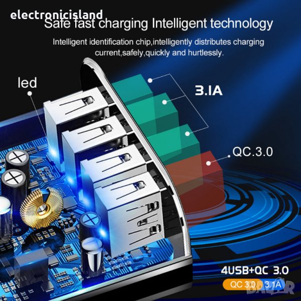 Бързо USB зарядно за смарт телефон 3А QC 3.0 4xUSB извода