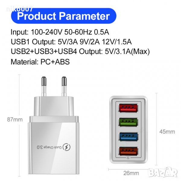 Quick 3.0 USB Charger-Супер бързо USB зарядно за телефон-таблет → Обява 29417020