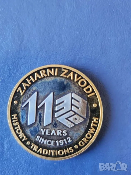 2.. плакет " 110 години Захарни заводи" - текст на български и реверса на английски език.
